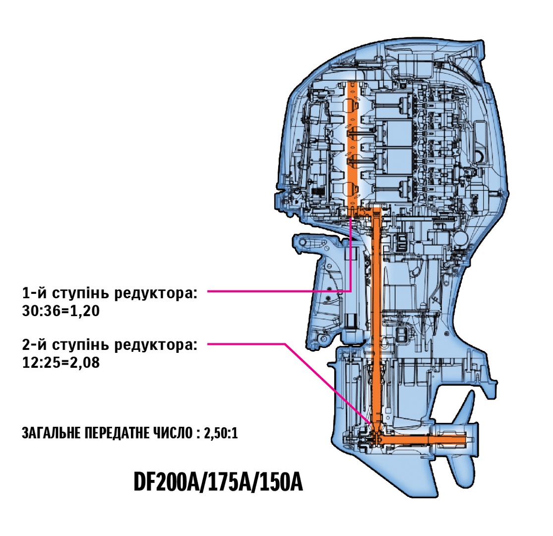 Відтепер і на DF150A, і на DF175A використовується такий самий блок циліндрів, що й на нашій популярній моделі DF200A. Більший робочий об’єм та покращена механічна конструкція поєдналися, щоб забезпечити швидше прискорення, як з місця, так і в діапазоні середніх обертів. Ми задовольняємо бажання наших клієнтів, покращуючи робочі характеристики наших підвісних моторів та підвищуючи економію палива.