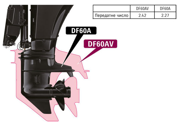 Ці підвісні мотори оснащені редукторами, здатними створювати передатне число 2.42, яке є більшим ніж на стандартних моделях зі звичайними редукторами. У поєднанні з великим гребним гвинтом діаметром 36см (14 дюймів) ця потужна система здатна забезпечувати вибухову передню тягу, яка ідеально підходить для великих катерів.