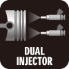 Система двох форсунок на циліндр забезпечує подачу потрібної кількості пального в кожний циліндр у потрібний час.